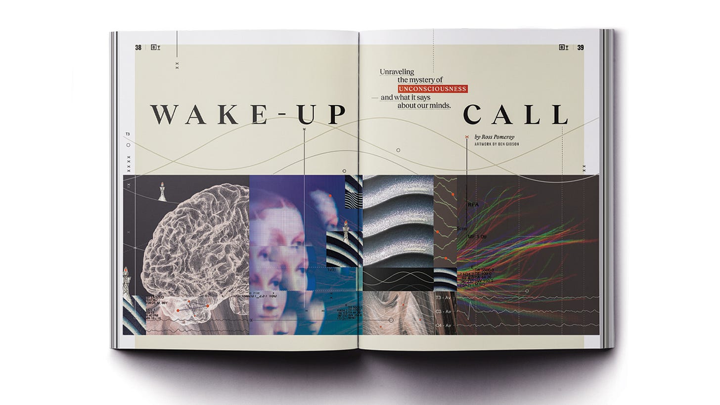The Consciousness Issue features essays and interviews with luminaries like Anil Seth, Annaka Harris, Erik Hoel, and Peter Godfrey-Smith, who explore some of the field’s biggest questions: Will AI ever become conscious? What if our intuitions about consciousness are all wrong? And what might unconscious brains teach us about conscious minds?